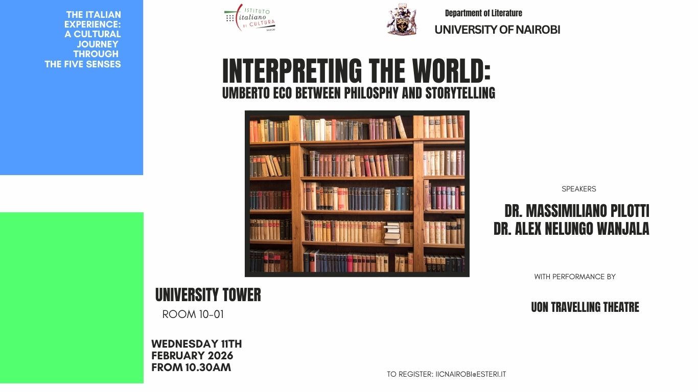 L’Istituto Italiano di Cultura di Nairobi, in collaborazione con il Dipartimento di Letteratura dell’Università di Nairobi, è lieto di presentare l’open lecture: