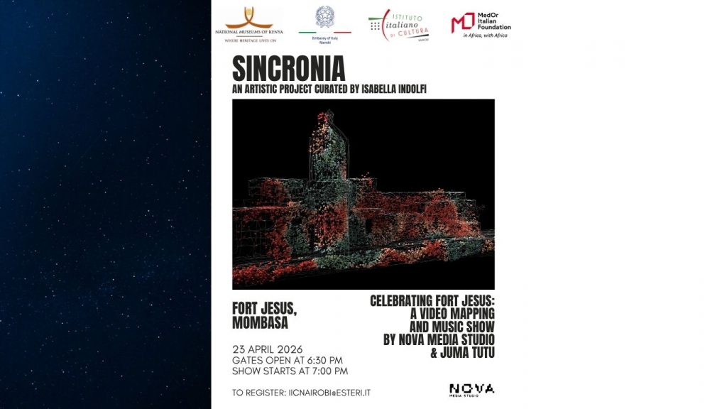 Abbiamo il piacere di annunciare il progetto artistico “Sincronia“, curato da Isabella Indolfi, con una serata unica che si terrà giovedì 23 Aprile 2026 alle ore 18:30 nella cornice suggestiva di Fort Jesus a Mombasa.
